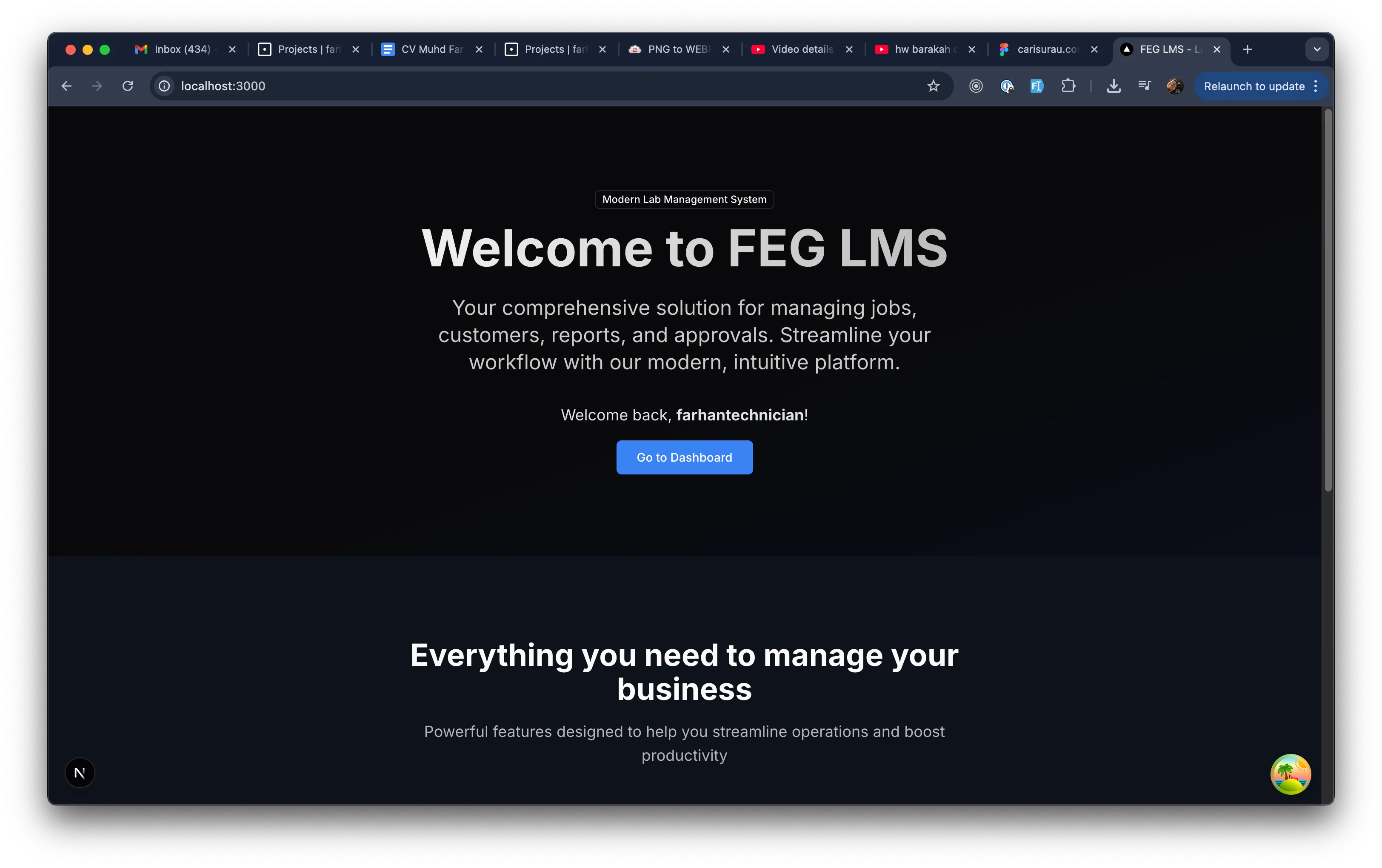 The system has transformed TNB FEG Lab operations from manual Excel-based processes to a fully digitalized management system, significantly improving operational efficiency and customer service.